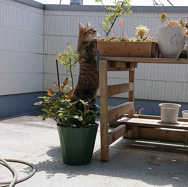 今日も1日いい天気。台の上に登りたいらし…